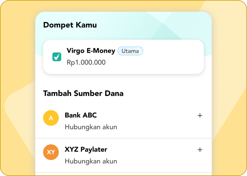 Ketersediaan berbagai sumber dana di Virgo Wallet memberi lebih banyak pilihan bagi pengguna aplikasimu dalam melakukan beragam pembayaran dan aktivitas keuangan lainnya.