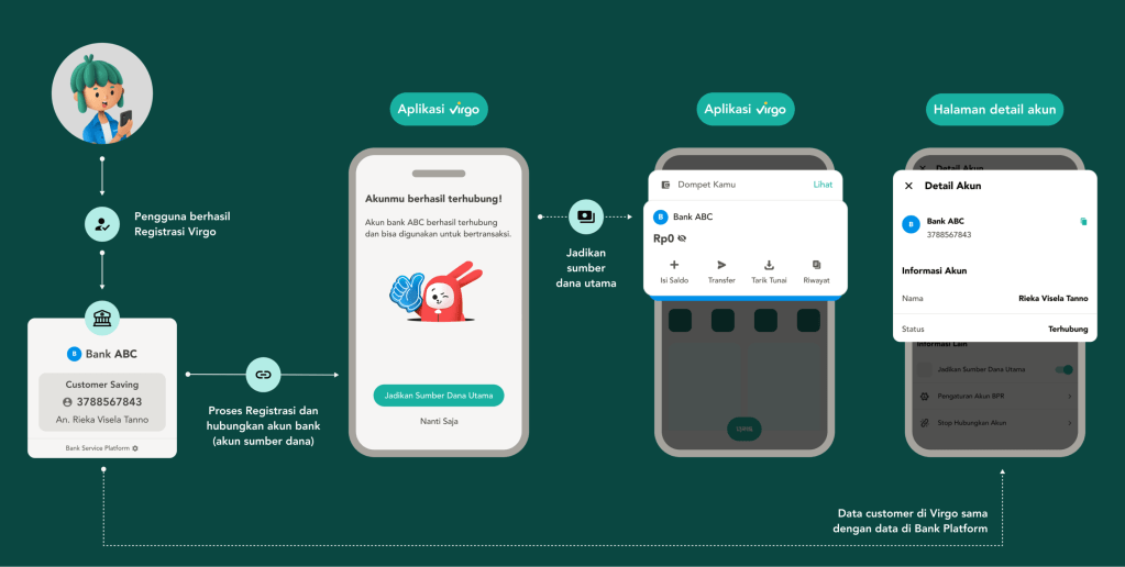 Proses hubungkan rekening bank dan validasi data customer.