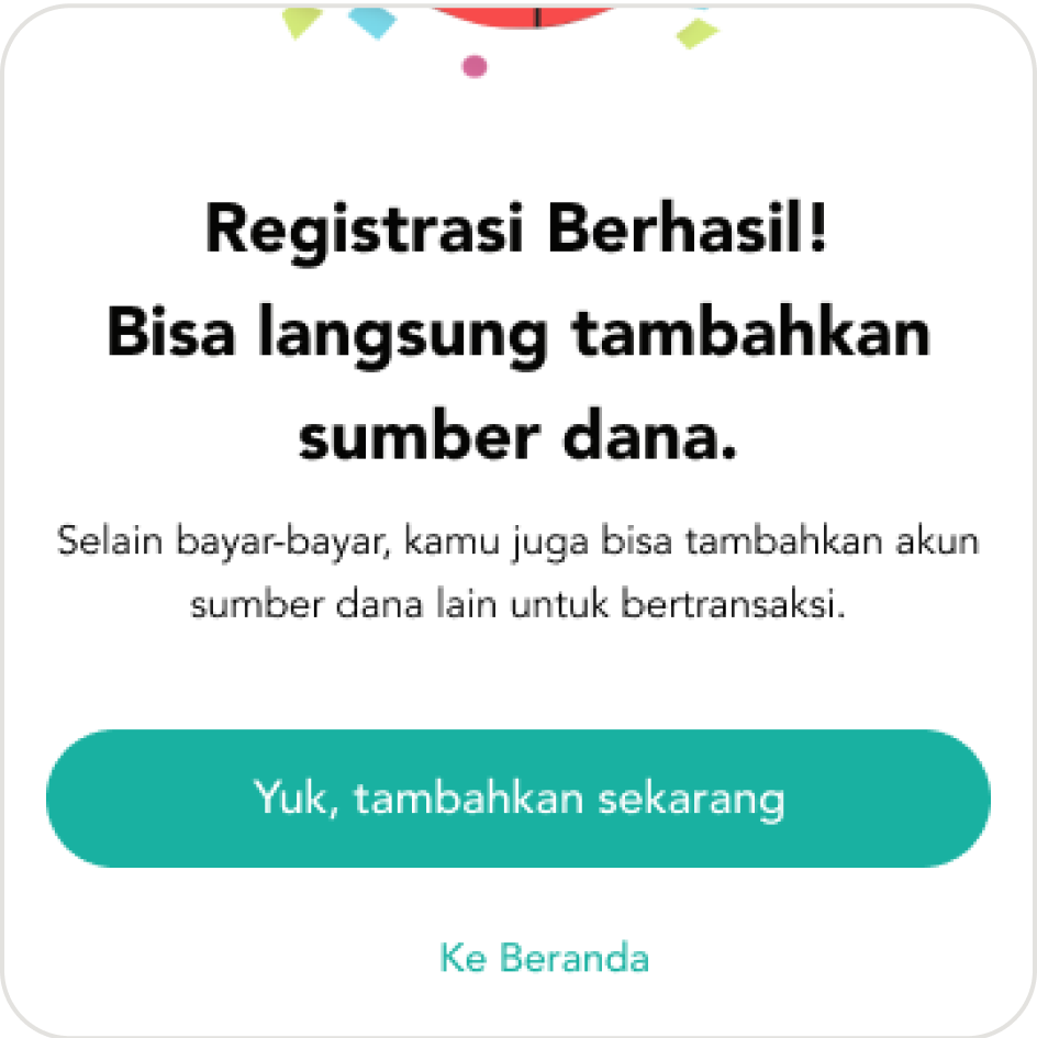 6. Halaman beranda dengan sumber dana pembayaran Anda