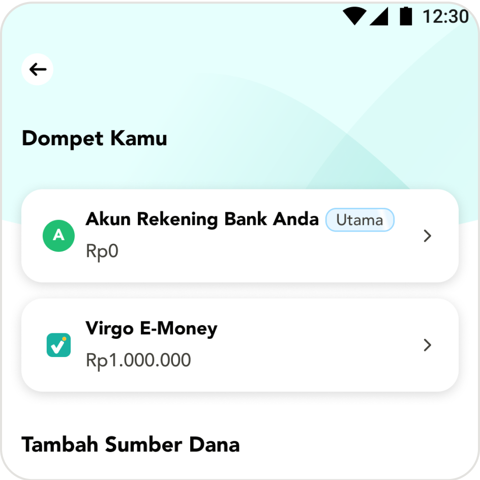 Optimalkan sumber dana Anda dengan layanan Wallet Virgo. Layanan multi sumber dana memungkinkan perusahaan Anda sebagai penyedia sumber dana/pembayaran menggunakan fasilitas dan fitur-fitur yang ada di Wallet Virgo. Pengguna dapat menggunakan sumber dana Anda sebagai sumber dana pembayaran.